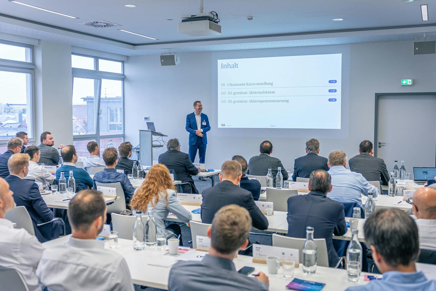 Hans-Georg Pietruck from Ultramarin was invited as a guest speaker on the topic of KI-Asset-Management in der Praxis at the meeting of the Capital Investment Management User Group of Versicherungsforen Leipzig GmbH.